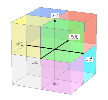 こちら 【 える 】 は 5 じげんめ の くうかん ほうこう の なまえ と なります。