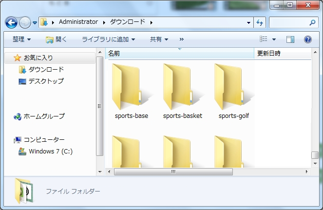 | ① 『 ● いっかつ 』 の ボタン を おし て、6 しゅもく ( 6-sports-chomograd.zip ) を いっかつ で おとします。 |