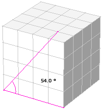 この 3つ を つかって はいいろ りったい かく を もとめる けいさん が にげんかく になります こんかい は それが ∠ 55.55 ど に なっている こと を かくにん します |