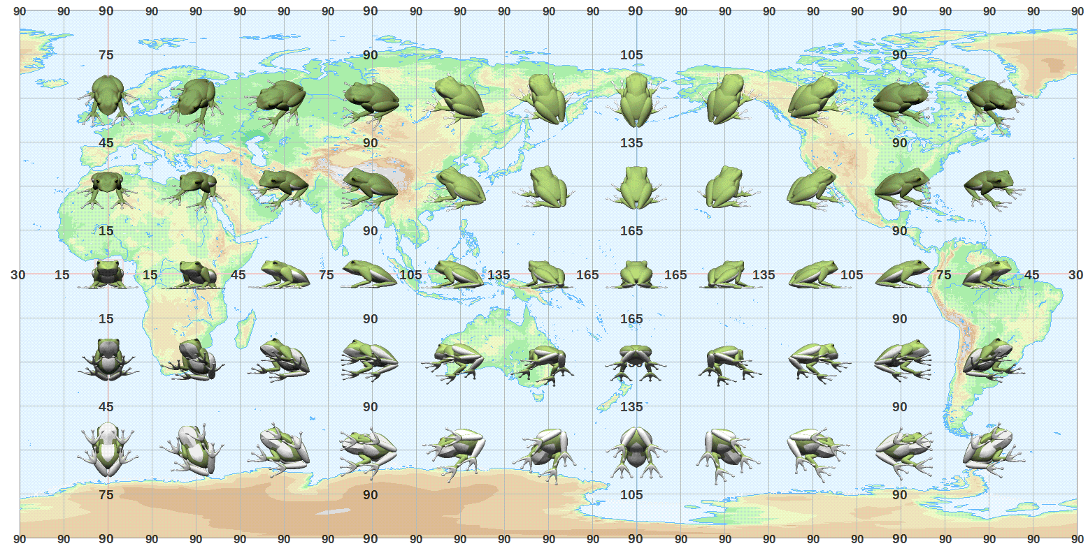 けいい ∠ 30 ど きざみ の あんぐる から ちゅうしん の かえる を のぞいてみます。 ちず クリック で シンプル ひょうじ に かわります。