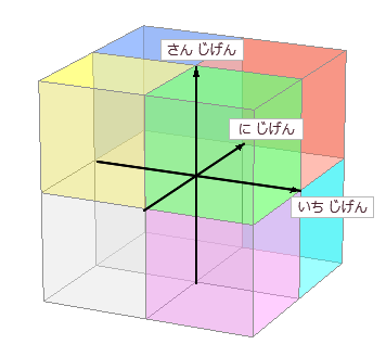 ぜろ じげん ![]() いち じげん ![]() に じげん ![]() さん じげん ![]() |