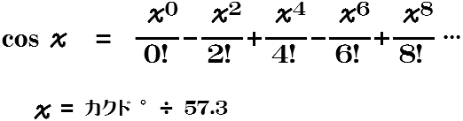 1−(ぱい2÷2!)+(ぱい4÷4!)-(ぱい6÷6!)+(ぱい8÷8!)-(ぱい10÷10!) ..