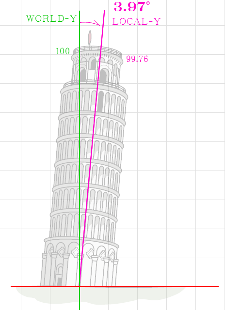 その ローカルじく ざひょうち が こさいん ∠ ひらき ° にて