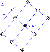 79 ちょもぐらーど ちてん において ヨーダー の きどう は およそ 39 ど ほど ほくとう に かたむいて います。 ちてんばんごう でいう ところの ① と ⑤ が 北 ▲ N に たいして ずれている かくど に なります |