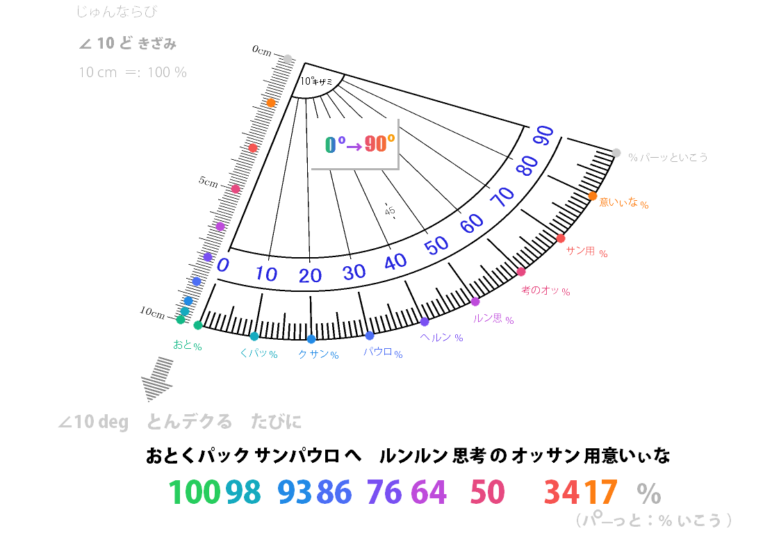 るーと{ 1−( ピンチさるしばい 2)} = くやしい … ∠ 10 ど