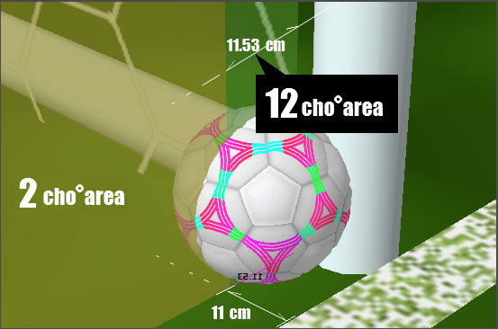 12 エリア ( みぎした すみ の )ギリギリ に ボール の ちゅうしん が