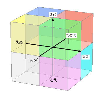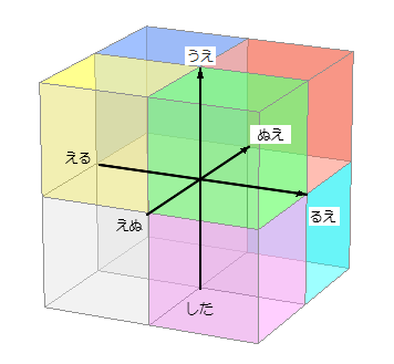 こちら 【 える 】 は 5 じげんめ の くうかん ほうこう の なまえ と なります。