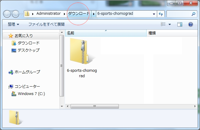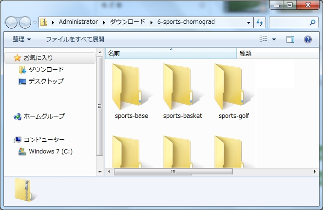 | ① 『 ● いっかつ 』 の ボタン を おし て、6 しゅもく ( 6-sports-chomograd.zip ) を いっかつ で おとします。 |