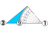 くみたて まず シート1 で はこ を つくります へいめん の しーた 50 ど ライン の うえ に みどりいろ シート を きりとり のせて ③ ⑨ ① を かさねます |