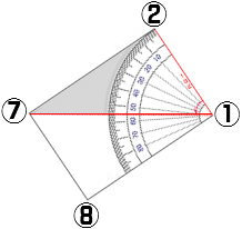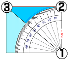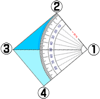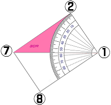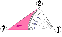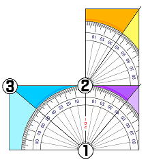 にみんかく ∠ 55.55 ど にみんかく は あおいろ と ももいろ を つかいます かくど きごう しーたΘ と 3D はんけい ひりつ r ぱーせんと を つかいます -------とちゅう ↓-------- きいろ 巾 と むらさきいろ 山 は ( にみんかく では ) つかいません へいめん の しーた 50 ど ライン の うえ に |