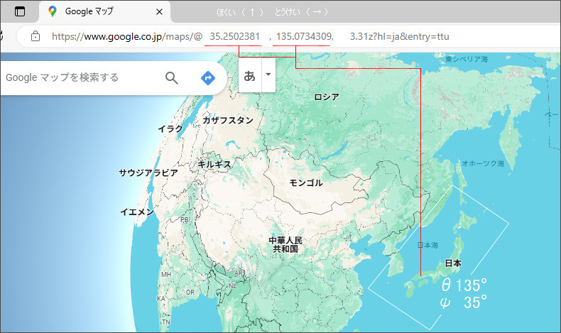 えくせる ∠ ( にほん じく km × 0.009 ) ど かえる の みえかた