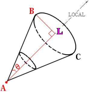 その ローカルじく ざひょうち が こさいん ∠ ひらき ° にて