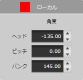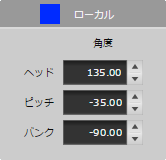 | ヘッド を とうけい 135 ど に します。 ピッチ ほくい を -35 ど に します。 ほくい ではなく なんい で いれます ∠ マイナス Ψ ぷさい バンク を -90 ど に します。 |