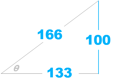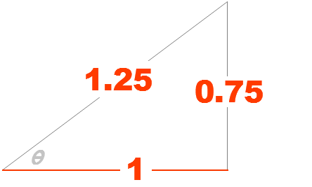 この カクド は 3:4:5 の ピタゴラス の サンカクケイ の するどい ほう の カクド になります。ここでは あつかいませんが、ひろいほう の カクド ( ∠53どくらい ) でも わかりやすい あたい がでてきます。