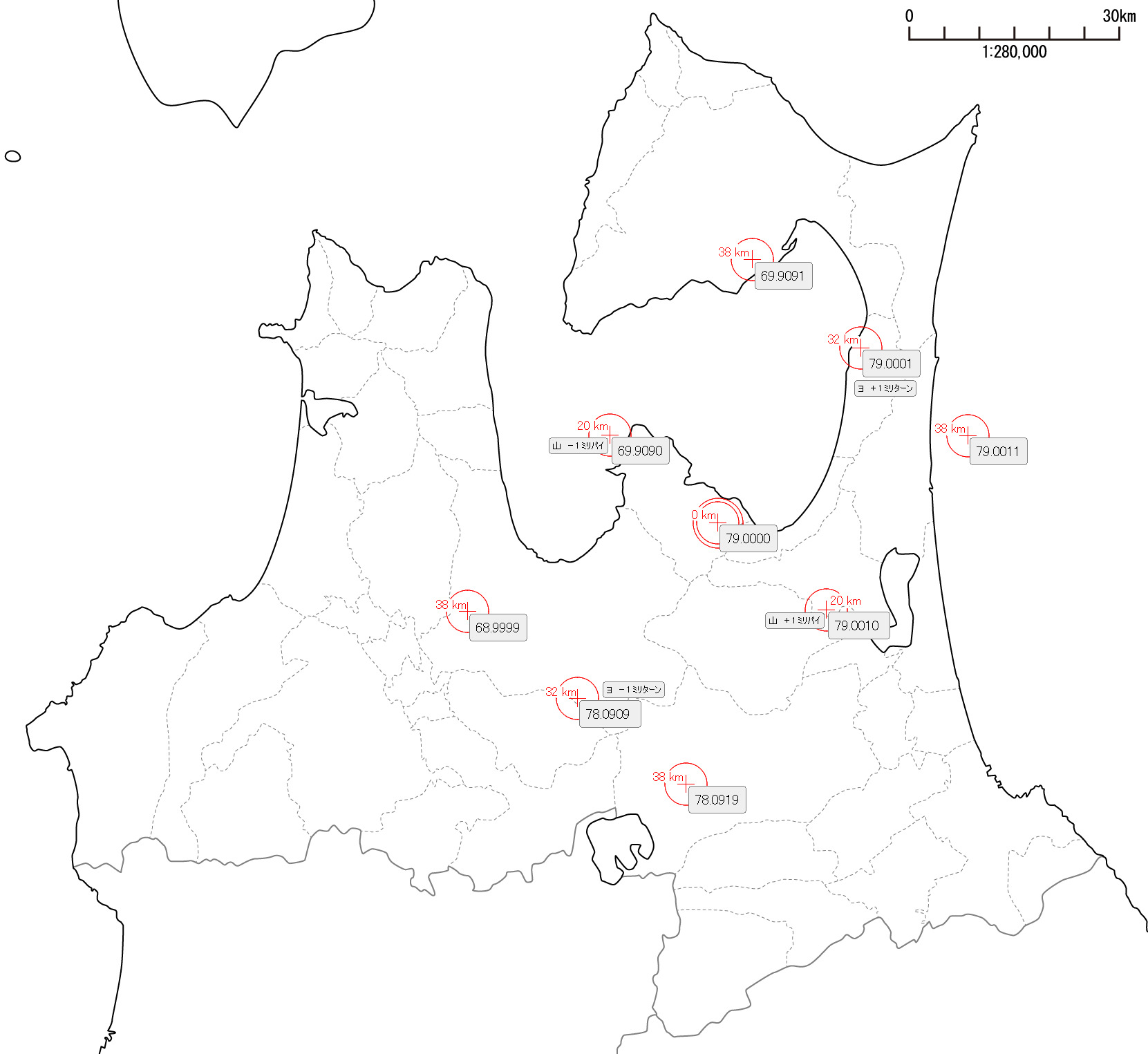 これ と つぎに でてくる ( ひがしつがる ) 79 の ちてん とを みくらべて みます。