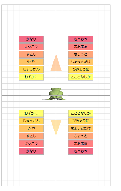 ぜんごさゆう の 4つの くかく を 4ページ に わけて